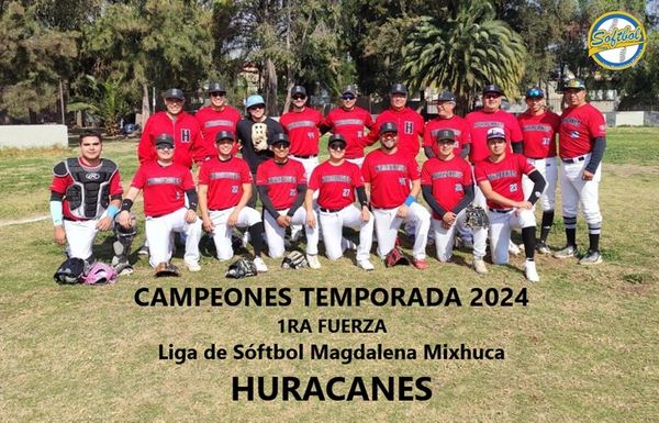 La Liga de Softbol Magdalena Mixhuca felicita al equipo HURACANES por el Cameponato obtenido en esta primera etapa de 1ra Fuerza, al vencer en un juego final al equipo de Mexico City 2 carreras por 0, con excelente picheo por ambos equipos, destando al bate MARIO SANCHEZ quien impulso las unicas 2 carreras del encuentro, por Mexico City destaco al bate ALEJANDRO SOBERANES, Felicidades a los Campeones de esta 1ra etapa....